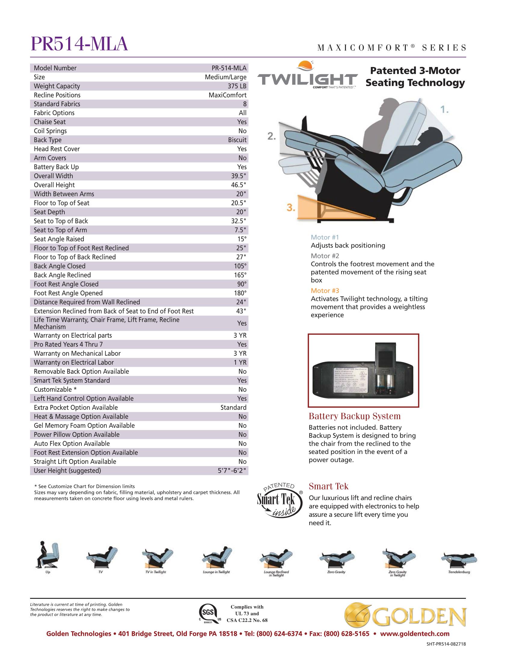 The Golden Technologies Twilight https://phoenix-electropedic.com/Twilight.html offers infinite position, zero gravity and the new Ultimate Reverse Trendellenburg position for circulatory problems, varicose veins, muscle cramps . . . .and too ship the weight and pressure off your tail bone. Selecta Golden Technology Twilight Lift Chair for your personal use, and take a health break.